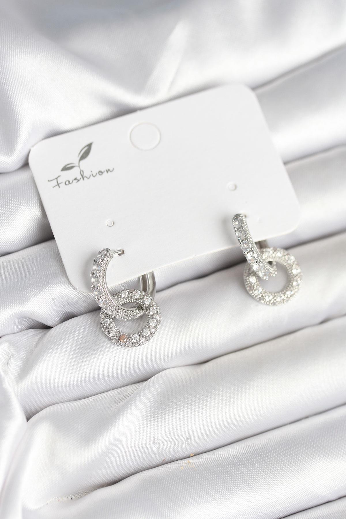 Gümüş Renk Pirinç Zirkon Taşlı Halka Model Kadın Küpe