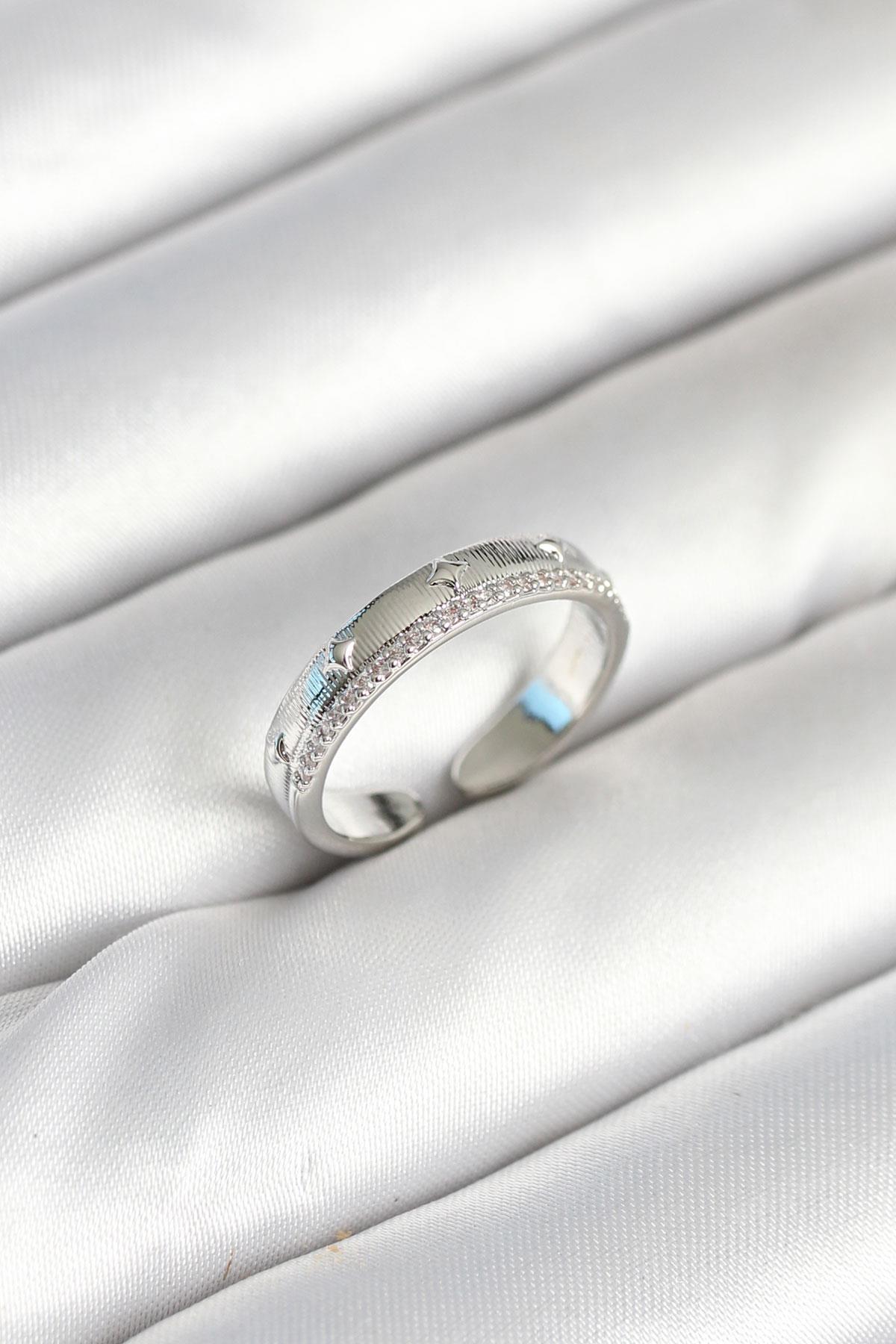 Gümüş Renk Şerit Zirkon Taşlı Kadın Yüzük