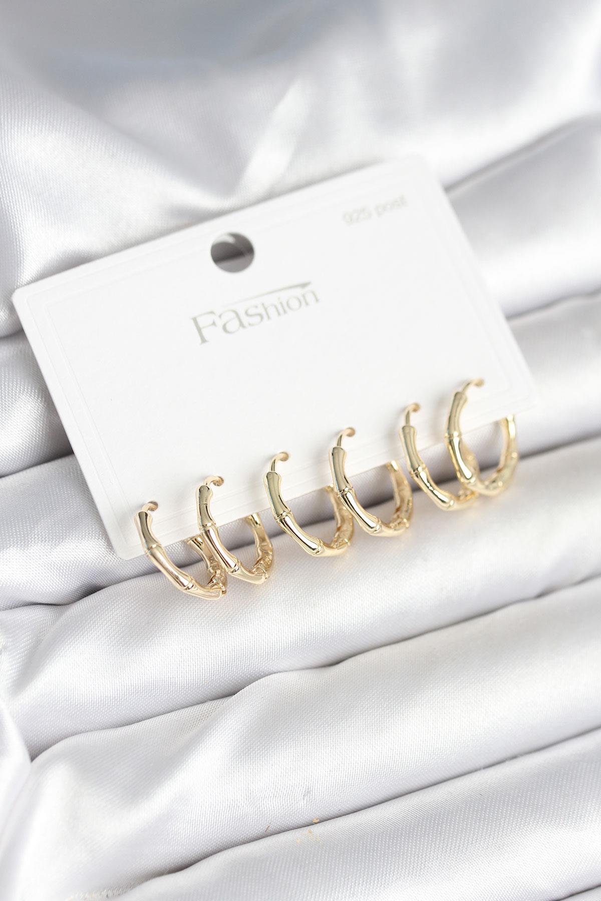 Pirinç Gold Renk Kemik Halka Model 925 Ayar Gümüş Çivili Kadın Küpe Seti