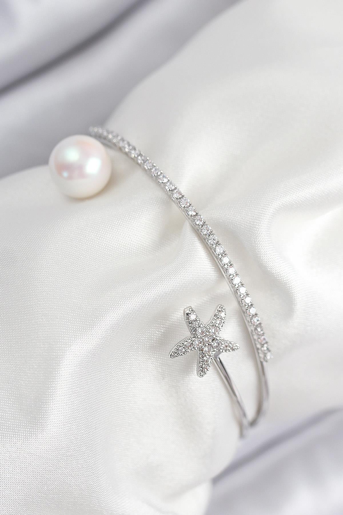 Pirinç Zirkon Taşlı Yıldız Ve İnci Model Gümüş Renk Kadın Bileklik - PRT3500EB08812